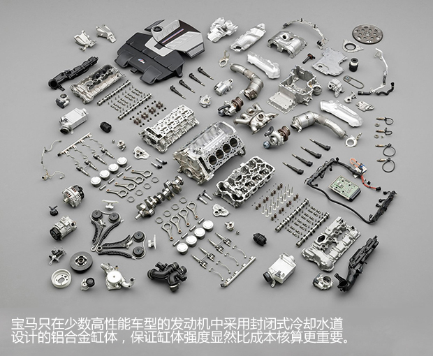 而對(duì)于超跑以外的量產(chǎn)車,采用封閉式冷卻水道全鋁缸體的發(fā)動(dòng)機(jī)并不多,寶馬也只是在X5M、X6M、M5、M3等高性能車型上配備的發(fā)動(dòng)機(jī)中使用了封閉式冷卻水道設(shè)計(jì)的鋁合金缸體。奧迪則是在RS4、RS6、S8、R8以及在蘭博基尼Gallardo車型中使用的V8、V10發(fā)動(dòng)機(jī)中,采用了封閉式冷卻水道的硅鋁鎂合金缸體,但曲軸座仍采用傳統(tǒng)的灰口鑄鐵材料。